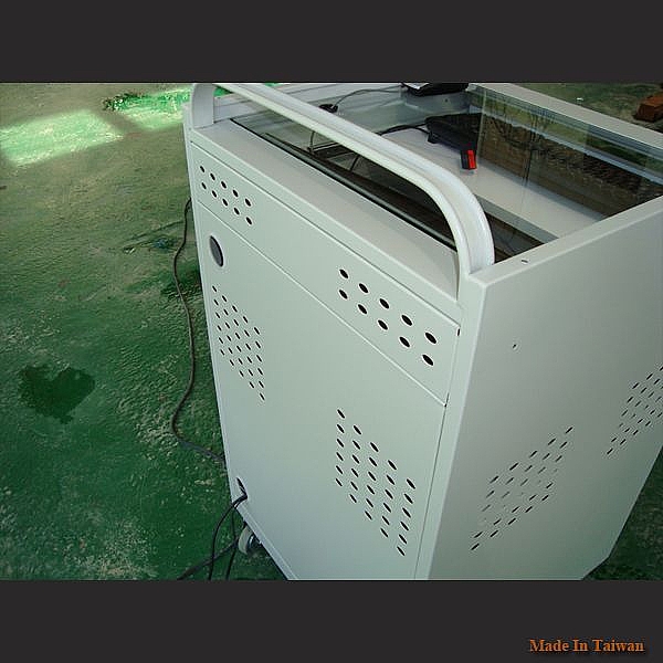 - 造型手把:( 圖D )由 1.1mm 鋼板捲邊成型, CO2 焊接在機櫃上(無螺絲固定)。