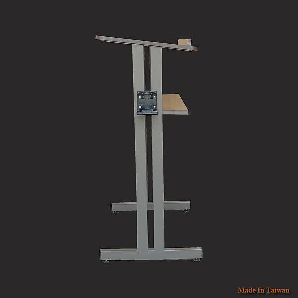 - 桌面:由 18mm 木芯板表面貼鐵刀木色美耐板而成,底部附有防物品墜落桿二邊修有圓角。