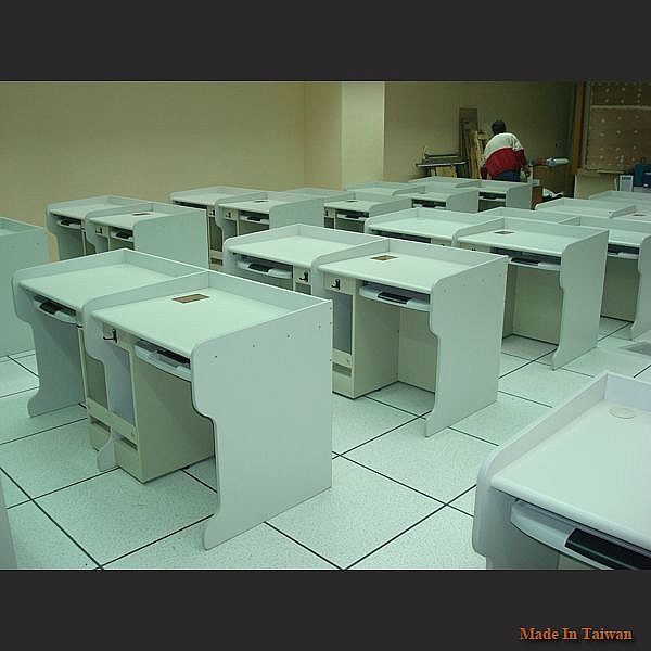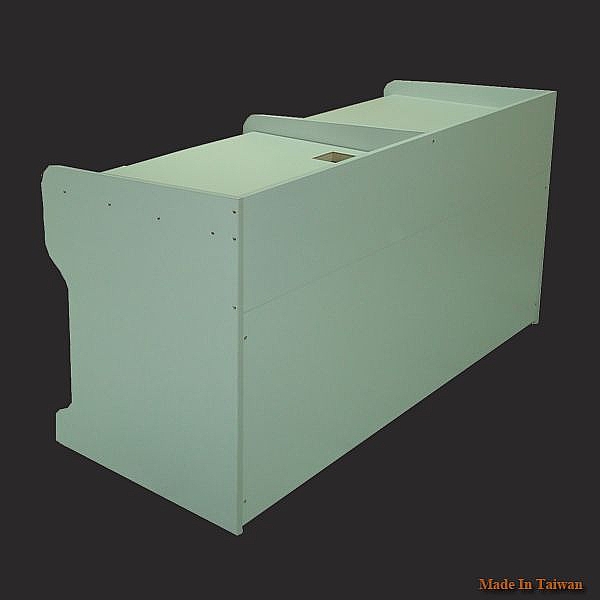 - 木質上前檔板:各一塊由 1.8cm 環保粒片板,表面為灰白色美耐皿處理。
