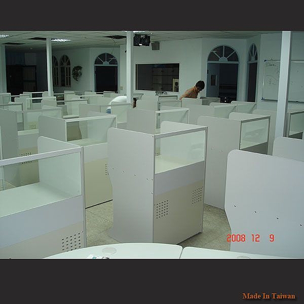 - 木質前檔板:由 1.8cm 環保粒片板,表面為美耐皿灰白色處理。